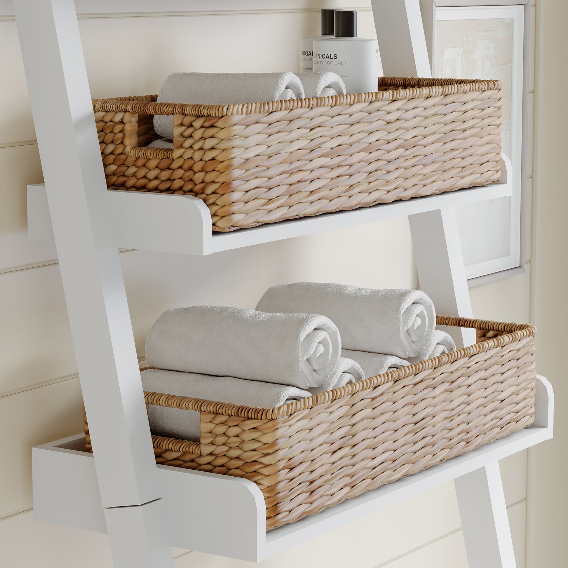 - The 3 freestanding shelves above the toilet provide ample storage for essentials such as towels, toilet roll, magazines, candles and other bathroom items.The 41.14" height bottom bathroom storage cabinet is designed to fit almost all toilets, and the toilet lid can be opened easily.